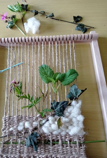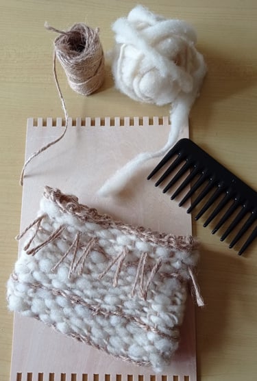 Tissez la laine, la ficelle de jute pour une œuvre unique, tout en matières naturelles.