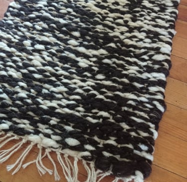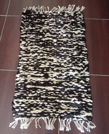 Tapis en laine blanche locale et marron foncé