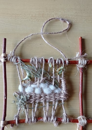 Tissez la laine, la ficelle de jute pour une œuvre unique, tout en matières naturelles.